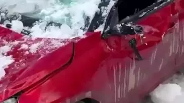 Erzurum'un Palandöken ilçesinde otomobil bina ile duvar arasında asılı kalırken sürücü hafif yaralandı.